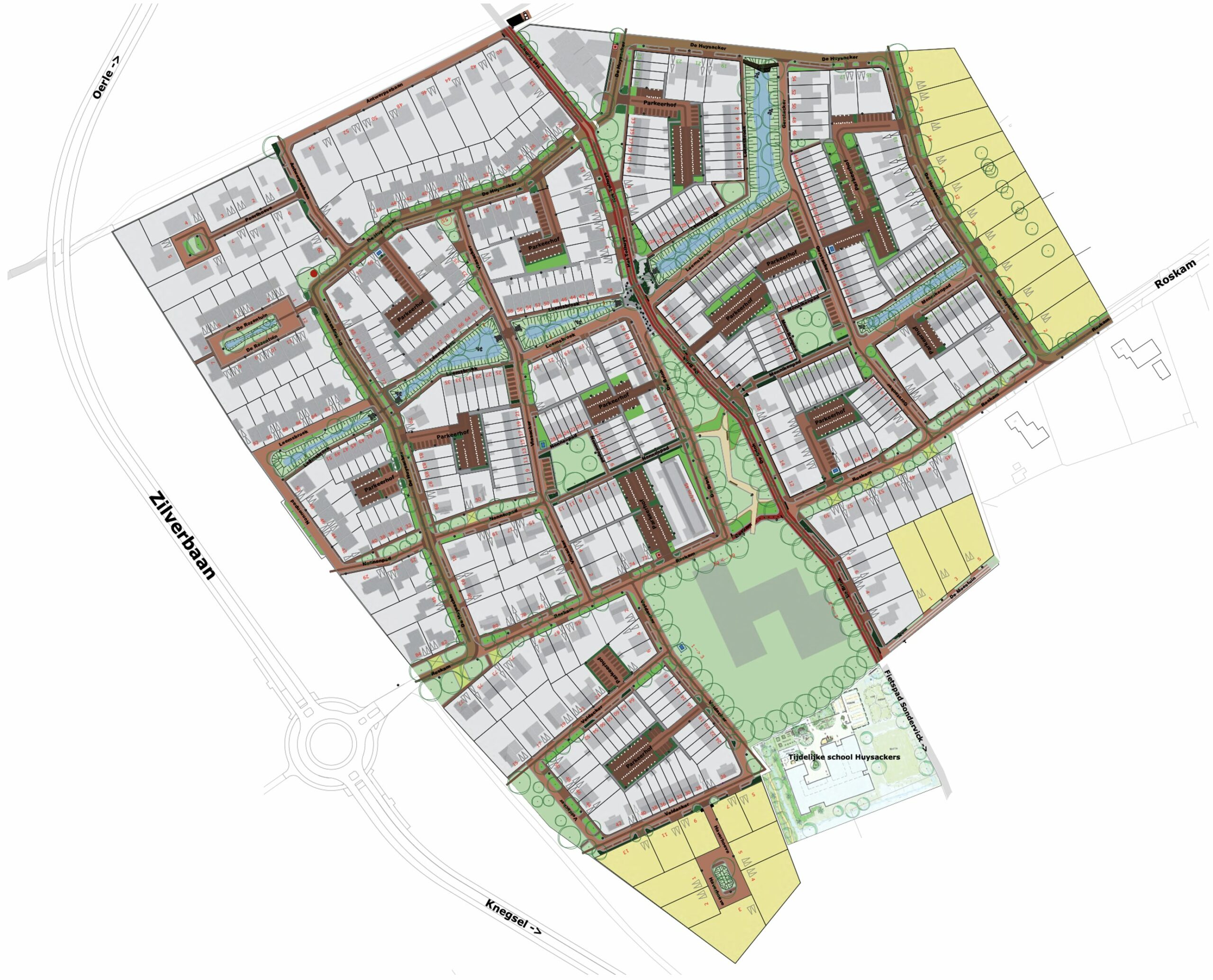 Voor de auto’s is het ingericht zodat je via de rotonde bij de Zilverbaan aan de westkant de buurt Huysackers kunt inrijden. Vanuit het oosten kun je ook met de auto de buurt inrijden via de Roskam. Echter, de Roskam wordt richting de Sondervick wel afgesloten voor het autoverkeer. Om toch toegang te krijgen kan dat via de Antwerpsebaan vanuit de Boerenbond en vanuit het zuiden via de ovatonde (de ovale rotonde zuidelijker op de Zilverbaan). Echter, de route vanaf de Boerenvond richting Huysackers zal komen te vervallen. Hierover vertel ik dadelijk wat meer.