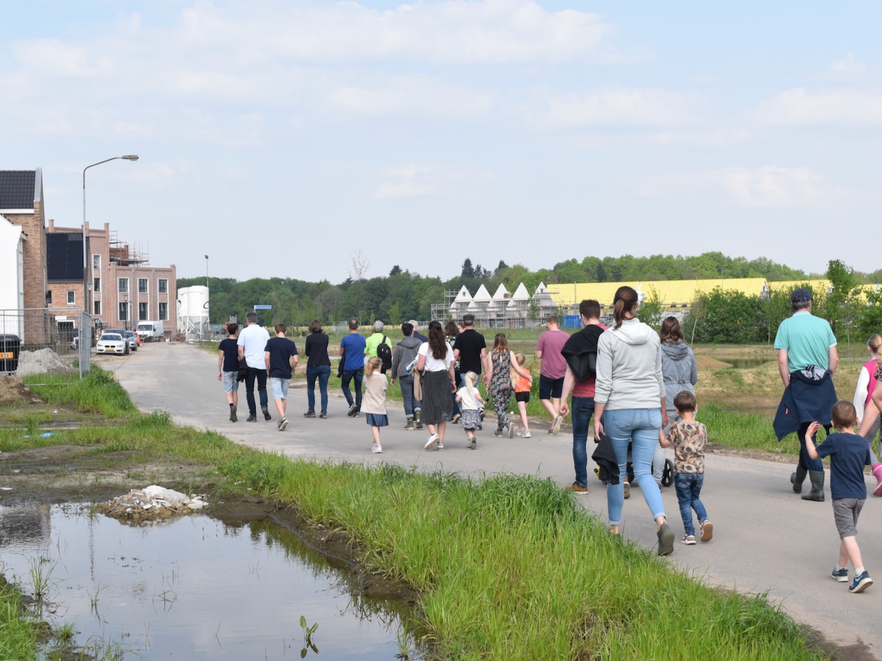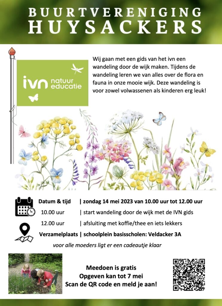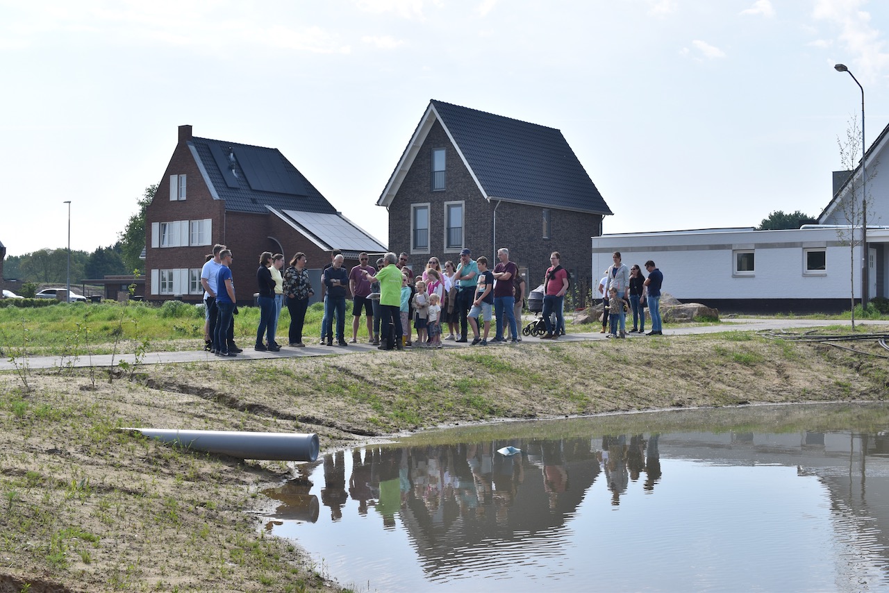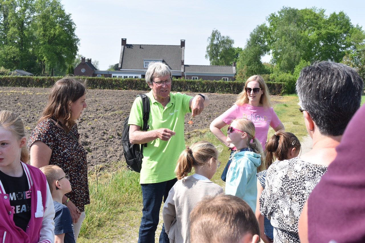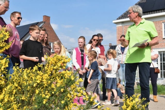 Met een gids van het IVN gingen we door de wijk wandelen op zoek naar alles wat groeit en bloeit. Het was leuk voor kinderen en volwassenen. Meneer Frans was onze gids en hij heeft veel verteld over verschillende bloemen. De uitleg bij het nieuwe natuurgebied rondom de Poelenloop was heel interessant en zorgen voor velen voor een aangename verrassing: hier zullen velen nog vaker terug komen om te komen wandelen. De natuur ligt echt heel dichtbij en het hemelwaterafvoer systeem van onze buurt draagt hier aan bij.