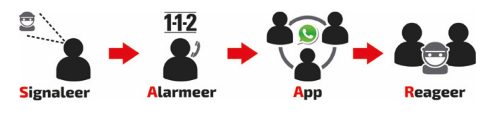 3. Als u een alarmerende melding wilt doen, bel dan eerst 112 en app vervolgens de Alarm App groep.